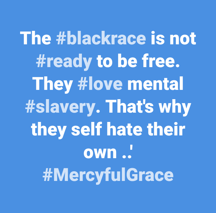 The #blackrace is not #ready to be free. They #love mental #slavery. That’s why they self hate their own ..’