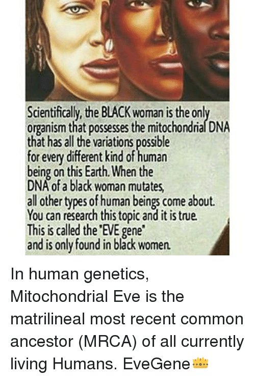 Eve Gene – first existed in a black woman. It didn’t come from White Jesus. So the black race arent the minority race, nor inferior. The black race preceded other races – including White Jesus ..’