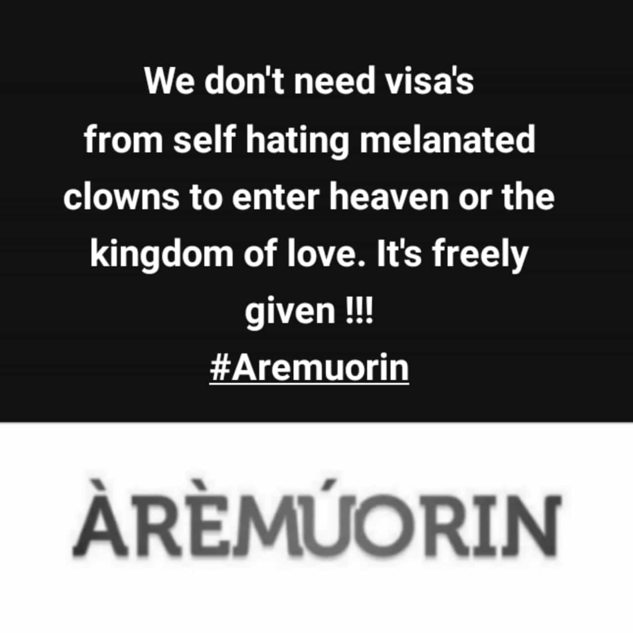 Greetings to everyone except melanated clowns who self hate and worship white jesus ..’